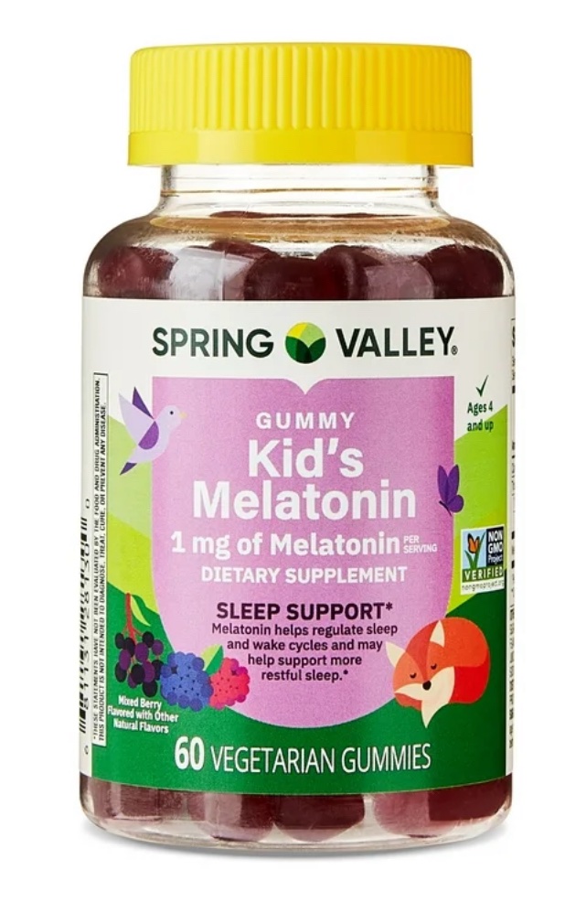 Spring Valley Kids Melatonina – 1 mg – 60 gomitas sin azúcar – Sabor mora y frambuesa 🍇🍓