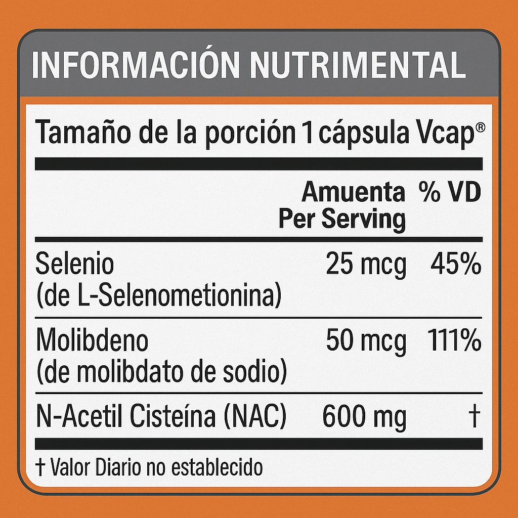 Con selenio y molibdeno para soporte antioxidante adicional