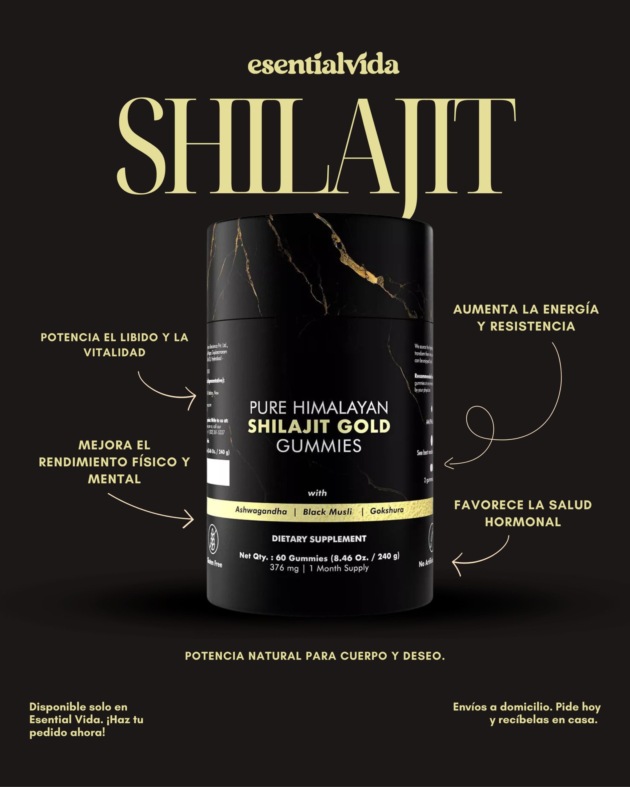 Las Shilajit Gold Gummies están elaboradas con resina pura de Shilajit del Himalaya, combinada con potentes extractos herbales como Ashwagandha, Black Musli, Gokshura, Ginseng y Jengibre. Esta fórmula única aporta energía, resistencia y bienestar general, en una práctica presentación de gomitas de agradable sabor.