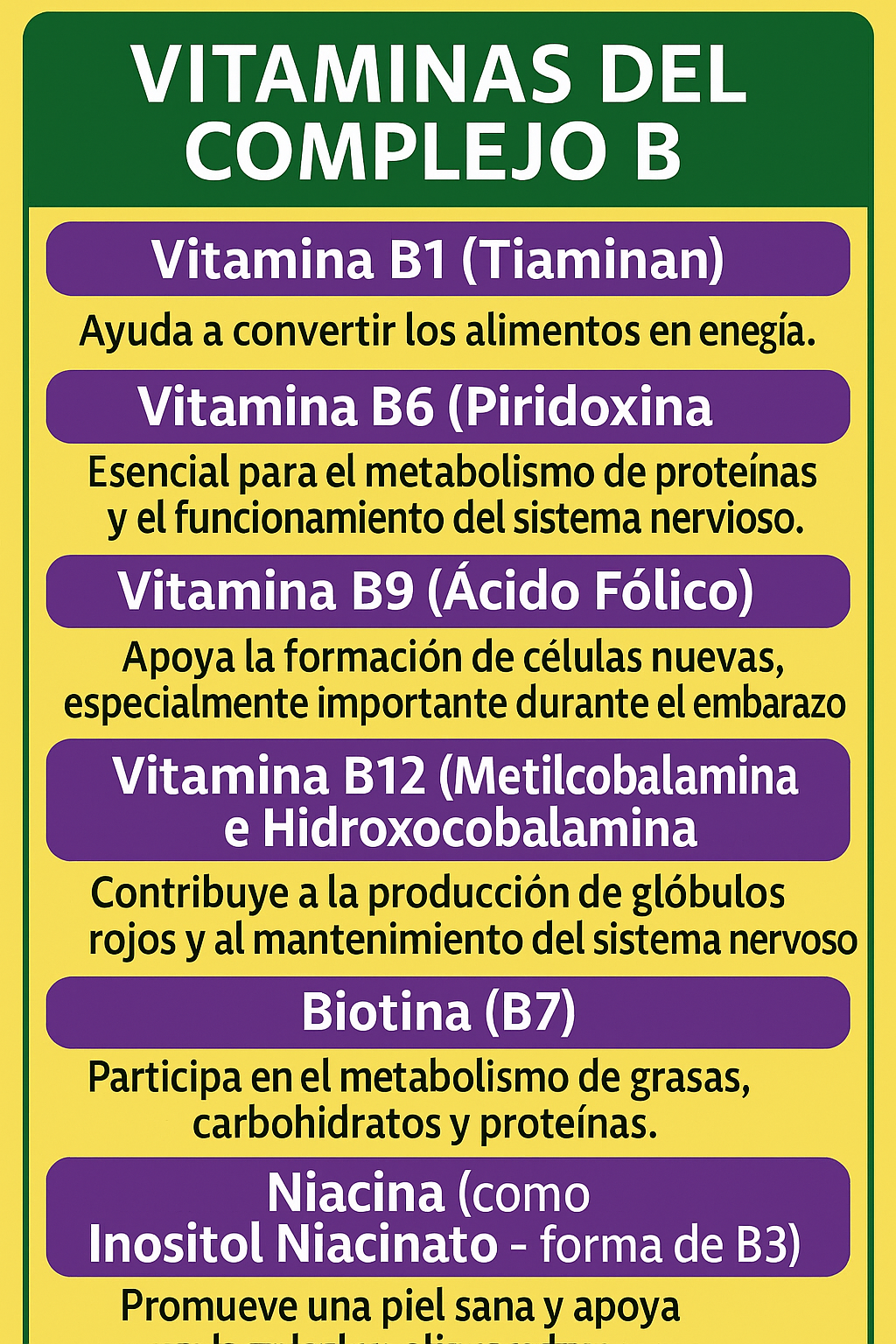 Las vitaminas del complejo B ayudan a convertir los alimentos en energía útil para el cuerpo.*