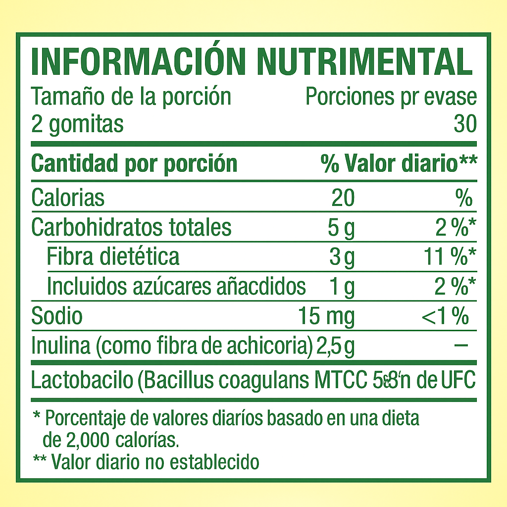 2 gomitas al día (porción sugerida)