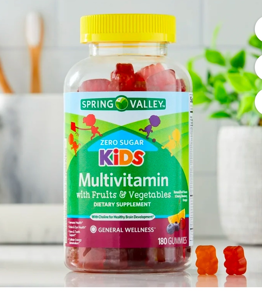 Formulado especialmente para niños, este multivitamínico de Spring Valley ofrece una combinación completa de vitaminas esenciales, colina y una mezcla natural de frutas y verduras para apoyar el crecimiento, la inmunidad y el desarrollo cerebral. Su fórmula libre de azúcar y edulcorada con alcohol de azúcar lo convierte en una opción saludable para el bienestar diario de los más pequeños.