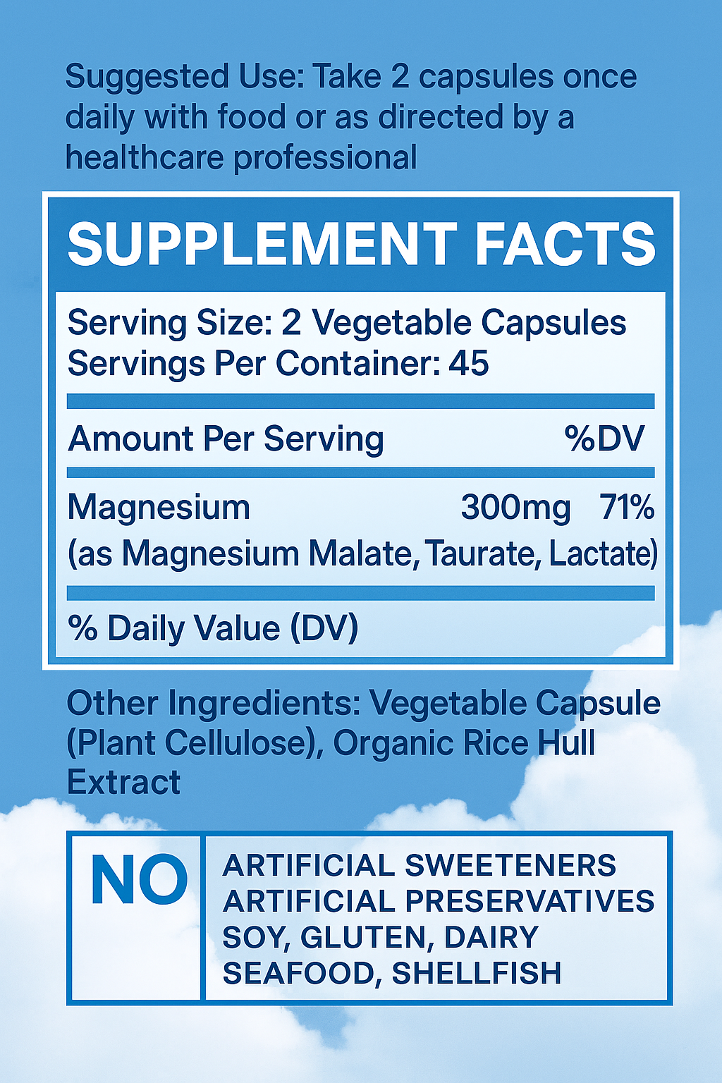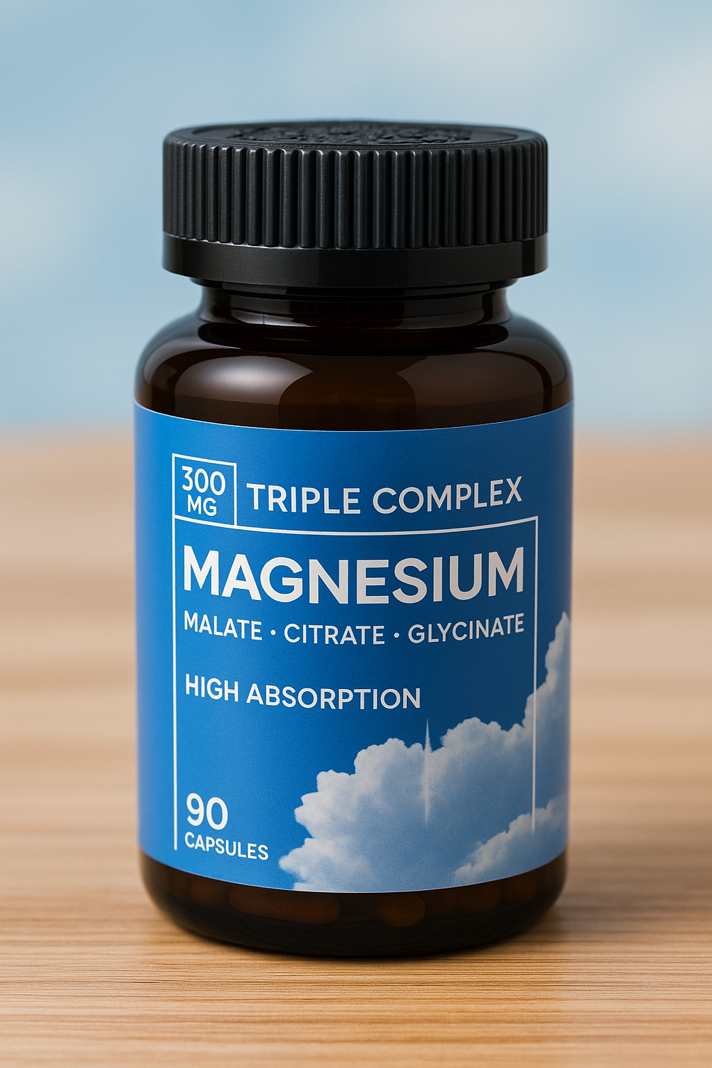 Triple Complex Magnesium combina tres formas altamente biodisponibles de magnesio —malato, citrato y glicinato— que aseguran una óptima absorción y aprovechamiento celular. Este complejo avanzado ayuda a mantener la salud muscular, nerviosa y cardiovascular, además de participar como cofactor en más de 300 reacciones enzimáticas esenciales del organismo.
